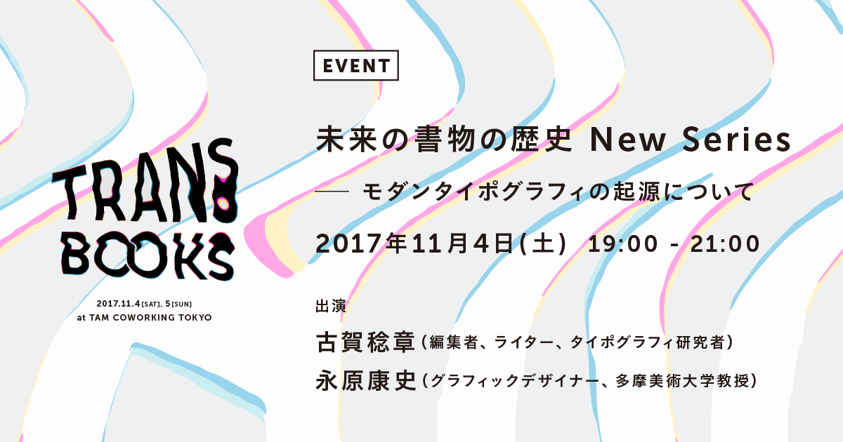 TRANS BOOKS 初日の11月4日(土) 19:00 より、古賀稔章さんと永原康史さんによるトークイベント「未来の書物の歴史 New Series」を開催します!